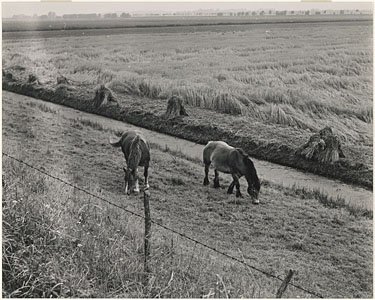 Paarden en een korenveld in de polder.