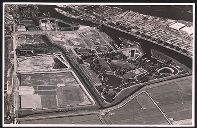 Met zand opgespoten terrein aan de Baanhoekweg voor de …