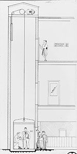 Tekening van een lift met EMF-motor.