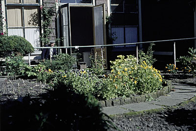 Tuin met personeel en een bewoner van het oudemannenhuis …