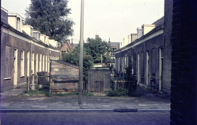 De Sarisgang in de richting van de Vriesestraat. Op de …