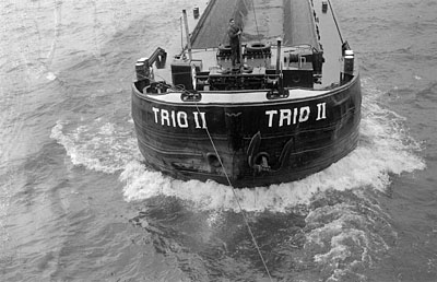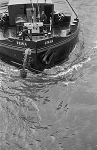 Rijnaak wordt gesleept.