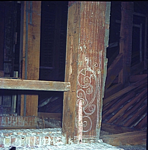 De zware moerbalken, geschraagd door een schuingeplaatste …
