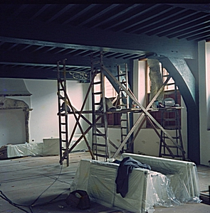 De werkzaamheden bij de restauratie van de dormter of …