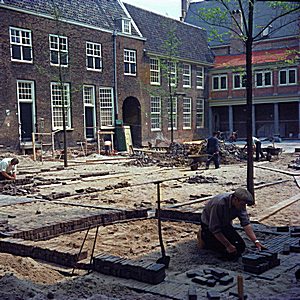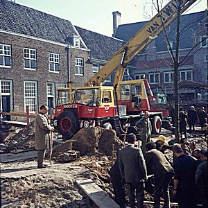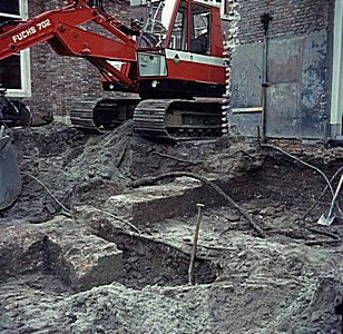 De graafwerkzaamheden op het Hof tijdens de restauratie.