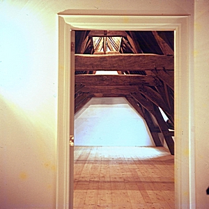 De zolderverdieping van één van de gebouwen in het Hof.