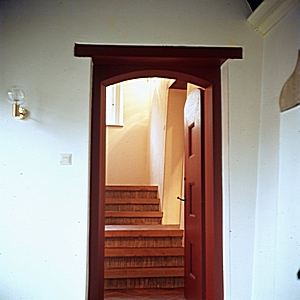 Doorkijkje naar de trap vanuit één ruimte's in het …