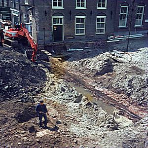 Bij de afgraving van het binnenplein kwamen delen van de …