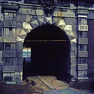 De Groothoofdspoort tijdens de renovatie, gezien vanaf de …