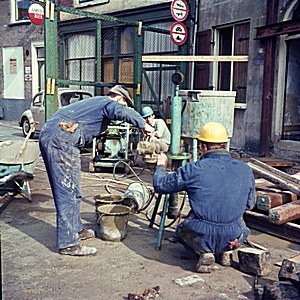 De bouwvakkers in de Palingstraat tijdens de renovatie …