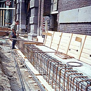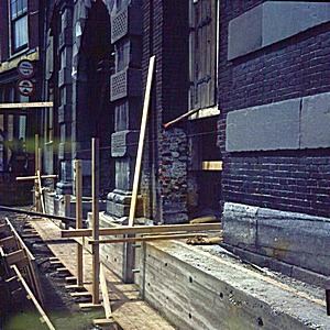 Werken aan de fundering van de Groothoofdspoort tijdens …