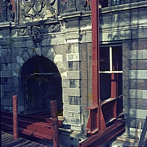 Detail van de Groothoofdspoort tijdens de renovatie, …