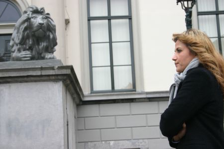 Wethouder Neza Albayrak voor het Dordtse Stadhuis