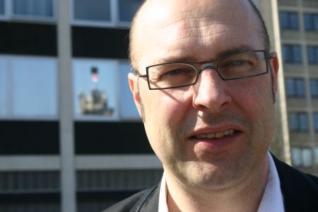 Wethouder Hans Spigt voor het stadskantoor