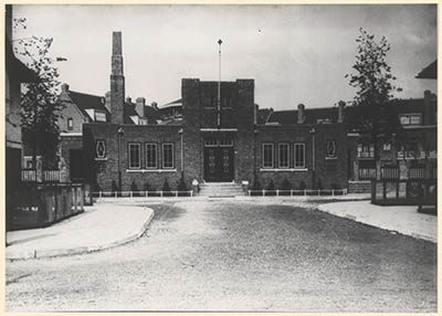 - Het gemeentelijk badhuis aan de J.J.A. Goeverneurstraat.