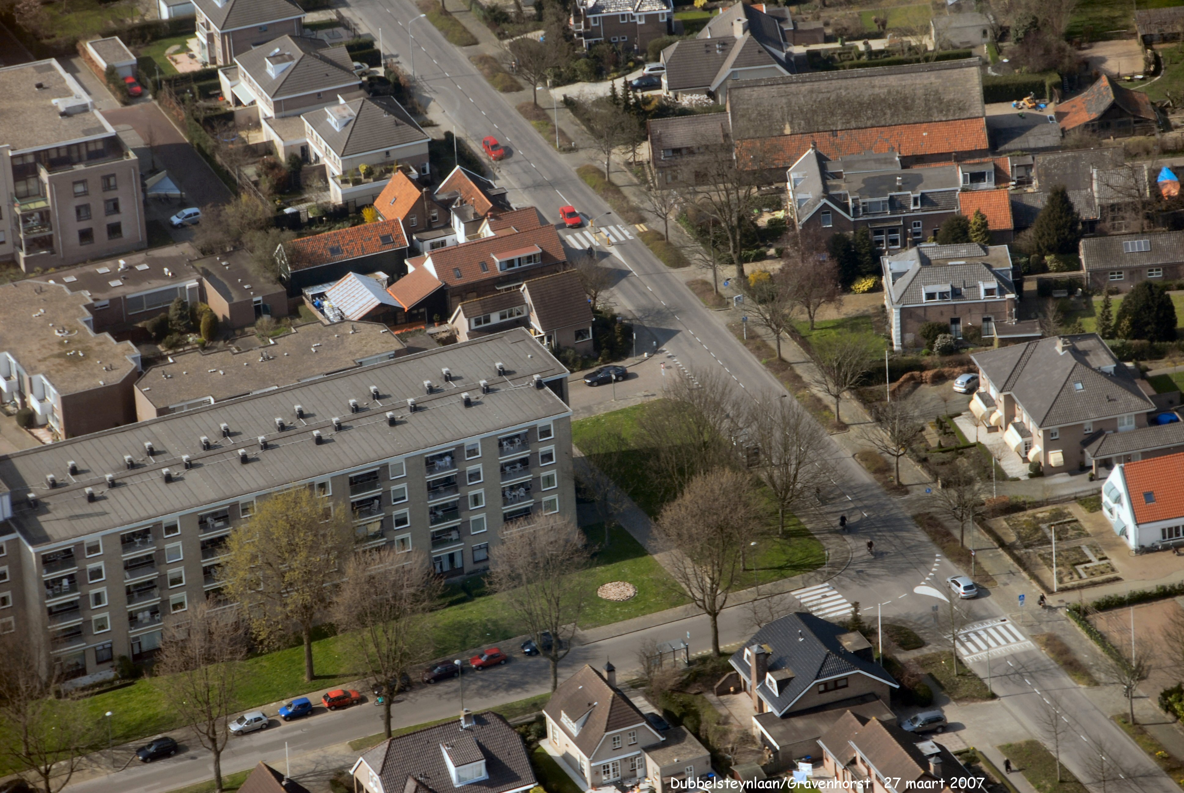 Links onder is de Gravensingel met app.complex "De Gravenhorst" er achter is de Vijverlaan.rechts boven is hier nog de Boerderij "De Oude Muur" te zien welke inmiddels in 2023 is afgebroken.