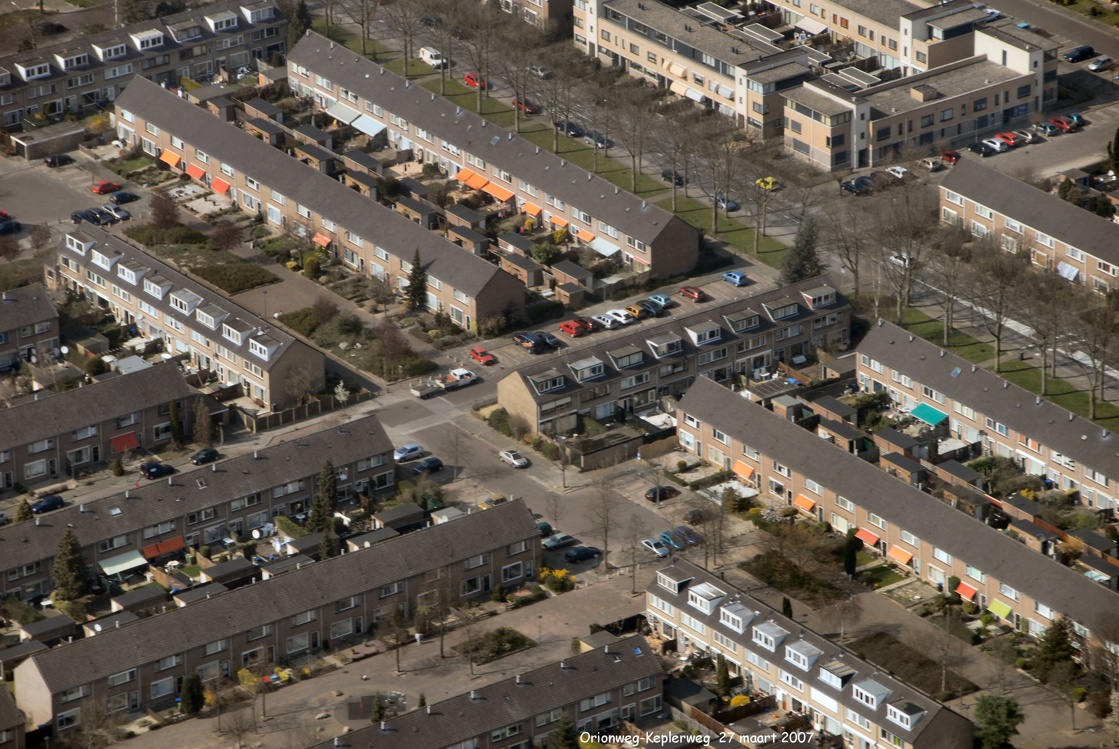 Rechtsboven de Eddingtonweg uitkomend op de Keplerweg en de Orionweg in Sterrenburg I.