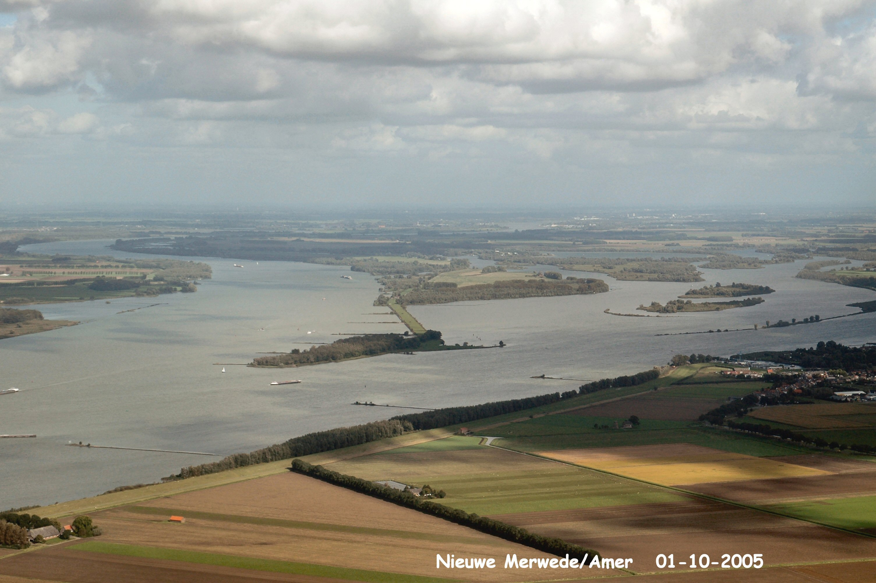 Zicht op de Brabantse Biesbosch met links de Nieuwe Merwede en rechts de Amer gezien in Noord/Oostelijke richting.