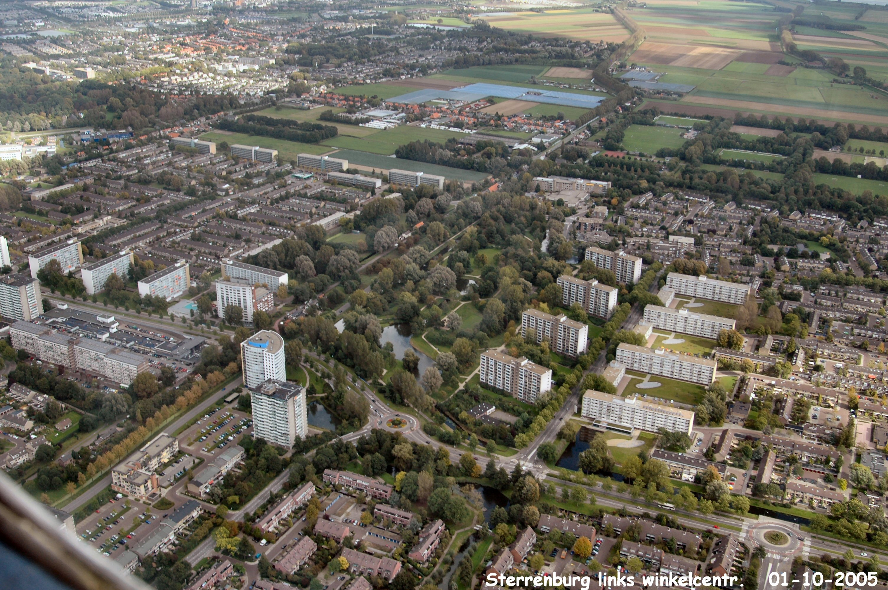 In het midden is Sterrenburg 1 en 2. Midden links winkelcentrum Sterrenburg. Links boven is Dubbeldam gezien in Noord/Oostelijke richting.