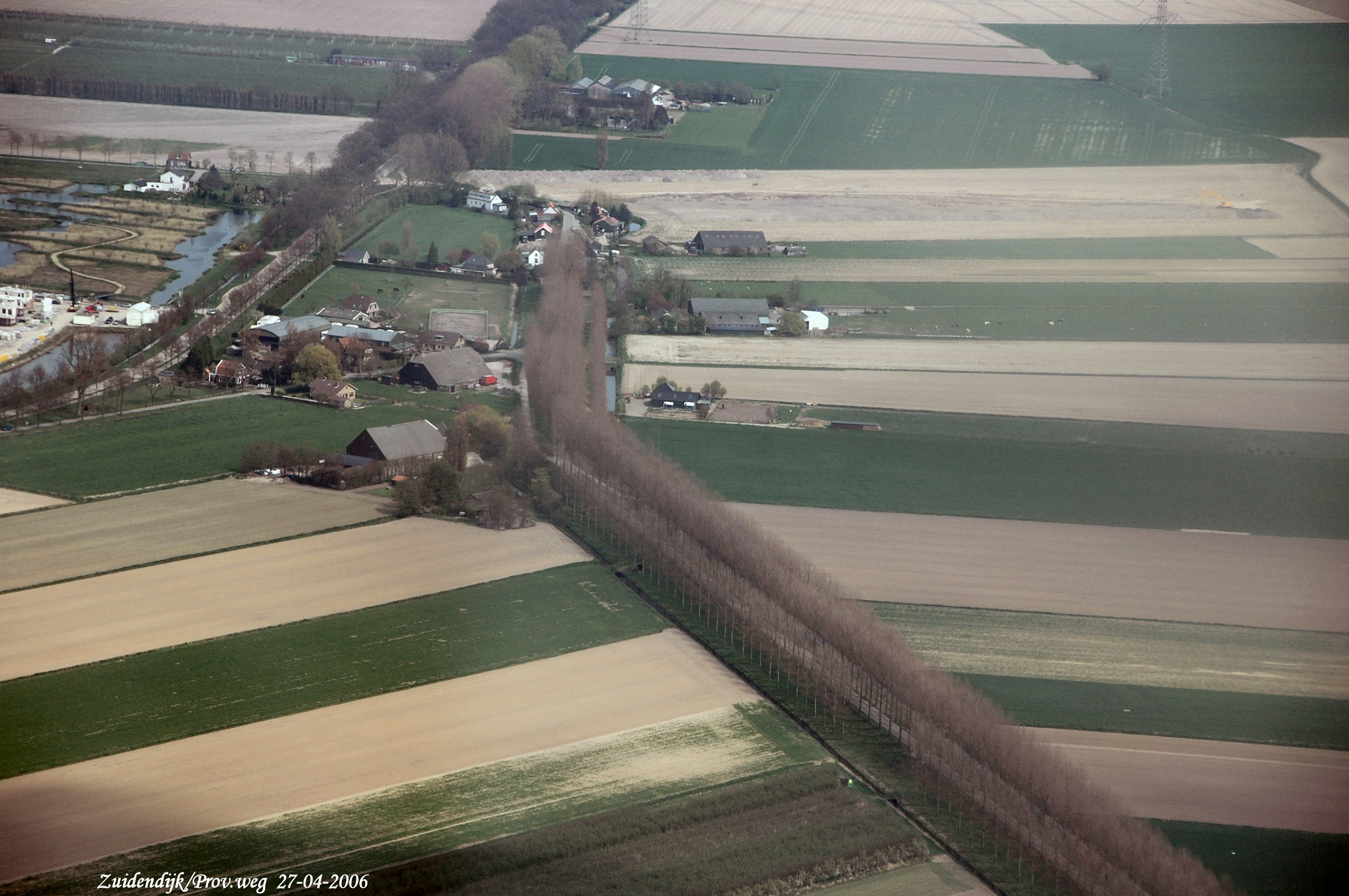Rechts onder naar boven is de Zuidendijk Midden links naar boven is de Provincialeweg. gezien in Oostelijke richting.