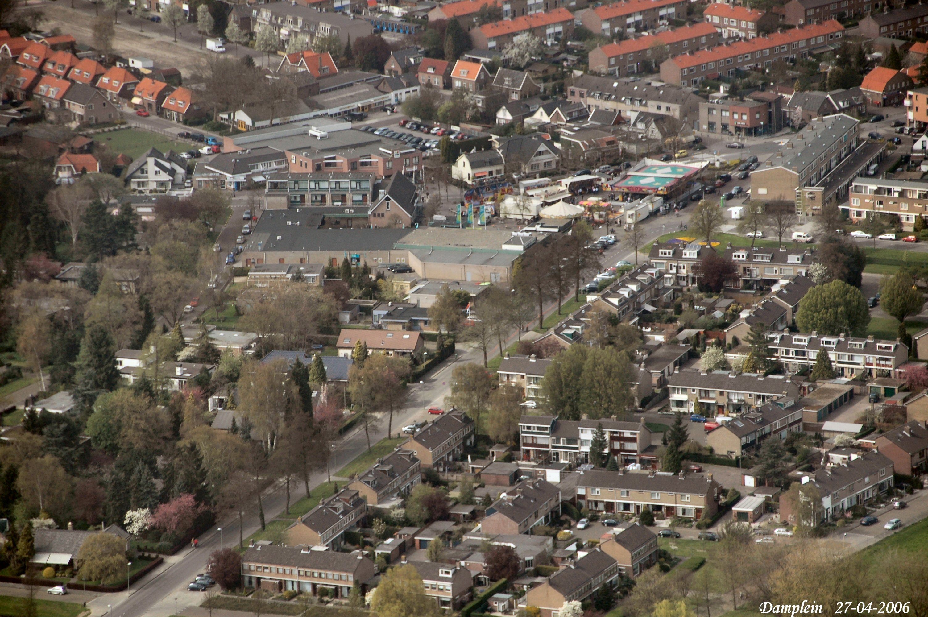 In het midden is het Damplein met de Elzenlaan naar onder.Midden links is de Dubbelsteynlaan. Boven is de Damstraat gezien in Noord/Westelijke richting.