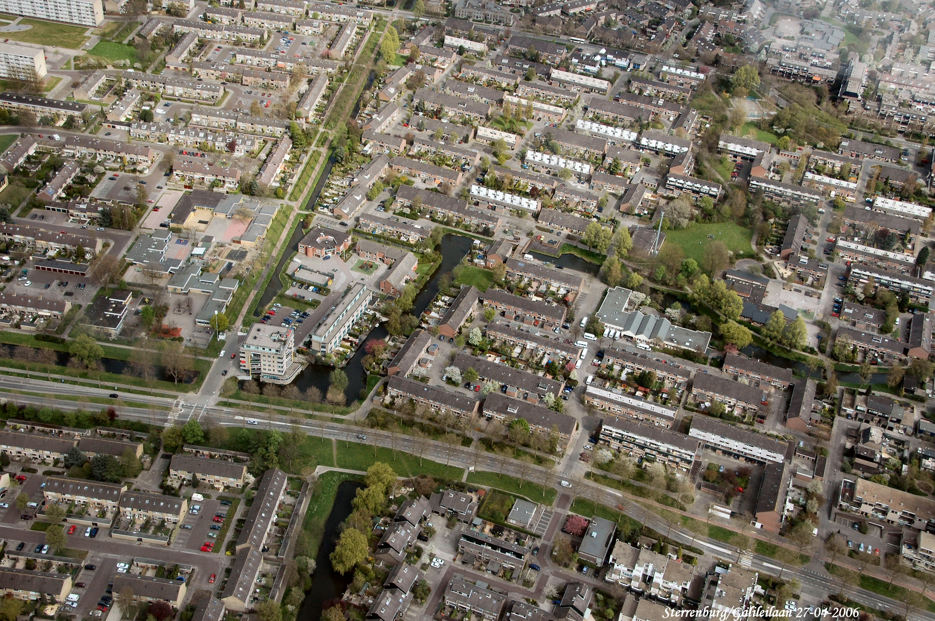 Onder van rechts naar links is de Galileilaan. Midden boven naar onder is de Grafelijkheidsweg. gezien in Noord/oostelijke richting.
