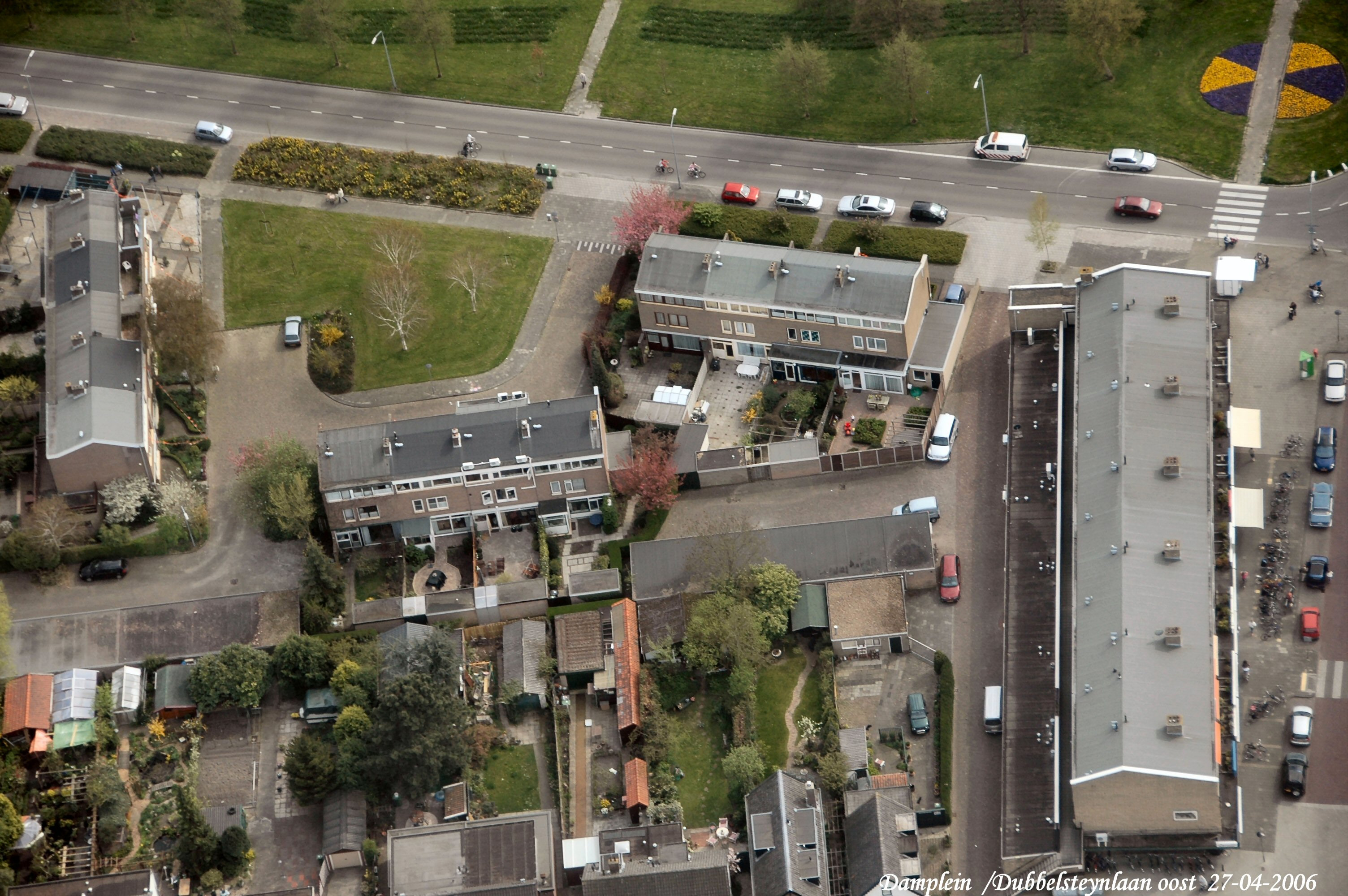 Rechts is het Damplein met boven de Dubbelsteynlaan. gezien in Zuidelijke richting.