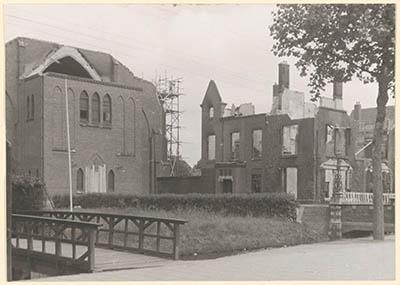 De in de Tweede Wereldoorlog in brand geschoten R.K. Anthoniuskerk aan de Burgemeester …