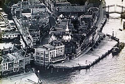 Gezicht vanuit de lucht op de Groothoofdspoort, rechtsboven de Damiatebrug.