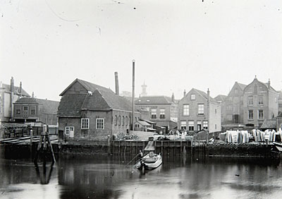 - De achterzijde van de Houttuinen gezien over de Nieuwe Haven.
