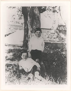 - Portret (ca. 1930) van de gebroeders Valk op jonge leeftijd: staande Wim Valk (7 jaar) en zittend Krijn (8 jaar); Wim werd in 1923 geboren en is tuinder en dichter.