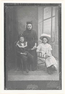Groepsportret van twee zusters en een broer van de familie Van Well. V.l.n.r. Cornelis …