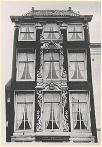 - Geornamenteerd raam van een pand aan de Wolwevershaven.