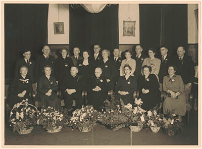 - De familie Zock en aanverwanten bij de viering van het 50-jarig bestaan van Blik- en Koperslagerij Zock aan de Bleijenhoek; rechts staand Ph. Zock.