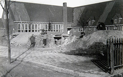 - Een beschadigde schuilkelder voor de Marnixschool