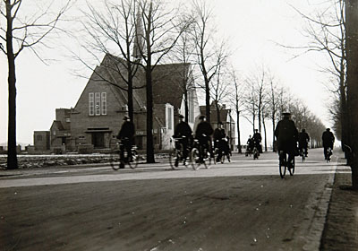- Fietsers op de Krispijnseweg ter hoogte van de Julianakerk.