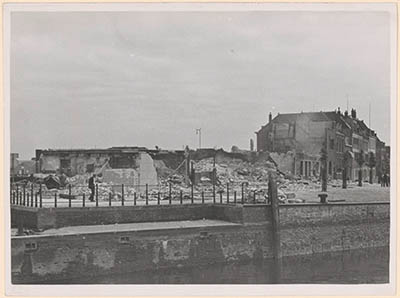 Verwoestingen aan de Binnen Kalkhaven door oorlogshandelingen.