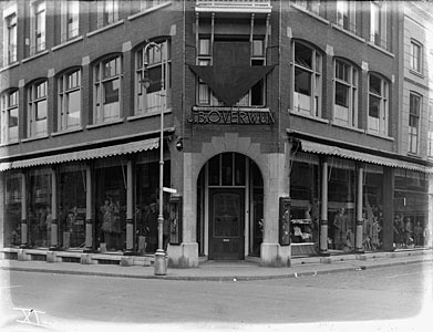 - Herenmodezaak Overwijn op de hoek Visstraat/Voorstraat (rechts).