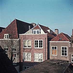 - De achterkant van een pakhuis aan de Kuipershaven na de restauratie.