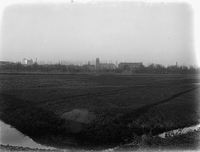 Watermolenweide naar het noorden gezien in de richting van de Victoria-fabriek, villa …