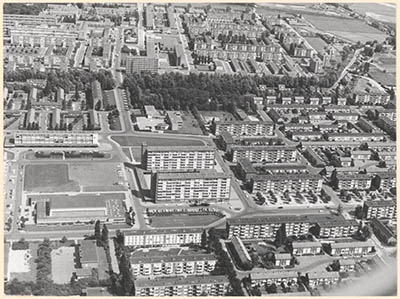 Het zuidelijk deel van de wijken Wielwijk en Crabbehof, gezien vanuit het westen, …