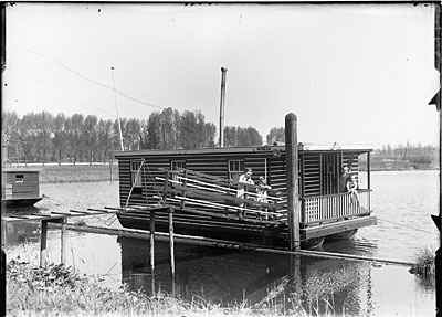 - Woonboten in een balkengat langs de Noordendijk, gezien naar het westen in de richting van de Oranjelaan.
