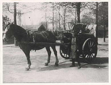 - Vuilniswagen met paard en vuilophaler van de reinigingsdienst de hoek van de Beverwijckstraat en de Albert Cuypsingel.