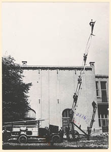 - Demonstratie van de brandweer met een ladderwagen en een Magirus-motorspuit.