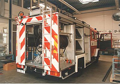 Mercedes spuitwagen van de Dordtse brandweer in de kazerne aan het Oranjepark