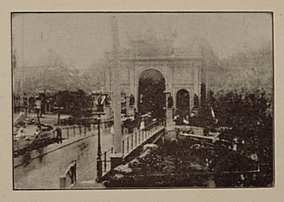 - Erepoort aan de Johan de Wittbrug ter gelegenheid van het bezoek van Koningin Wilhelmina en koniging regentes Emma aan Dordrecht, 18 augustus 1897