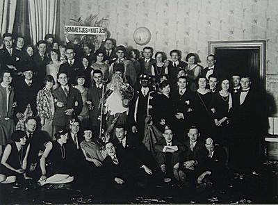 - V.l.n.r. achterste rij 7 Jo Wijburg (lichte jurk, lok haar), 9 Henk Fok (donker pak, stropdas), 11 Johanna Franken (donkere jurk, achter schouder 9), 12 ... Steenhoven (lichtere jurk, achter schouder 11), 16 Piet Kampman (rechts onder klok), 17 Dorothea Franken. Middelste rij 21 Lien Versloot (met bril), 22 Piet de Kooning (met hoofddeksel en geruite broek), 23 Adri ..., 24 ... Doorn (met stropdas), 25 Rien Versloot (met pagekapsel), 27 Sinterklaas, 28 Zwarte Piet, 38 Willy Steehouwer (uiterst rechts, met vlinderdas). Voorste rij, zittend 43 Gisela Ginthler (met bril, lichte jurk en pagekapsel).