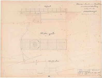 - Ontwerptekening van de Zakkendragersbrug over het Maartensgat.