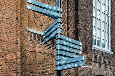 - Wegwijzer bij de Waalse Kerk in de Visstraat bij de hoek van de Voorstraat.