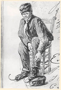 - Tekening van een schaatser, ter herinnering aan de IJsfeesten in de strenge winter 1890/1891.